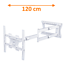 Met de XTRARM Ferrom 120 cm TV Beugel White kunt u de tv tot 120 cm uit de muur trekken. Mede door de 3 draaipunten kunnen zeer grote tv's haaks op de muur geplaatst worden. Deze TV Beugel biedt u dus zeer veel mogelijkheden met betrekking tot de kijk positie. De XTRARM Ferrom 120 cm TV Beugel White is draaibaar, kantelbaar en roteerbaar en voorzien van kabeldoorvoer om de kabels netjes weg te werken voor een opgeruimd beeld. De maximale Vesa maat is 400 x 400 mm Wordt geleverd met een montage set. Bovendien kan de arm op verschillende plaatsen ( rechts, links of in het midden ) op de muurplaat gemonteerd worden. Deze beugel heeft een Rotate functie zodat de tv zowel in landscape als portrait stand gedraaid kan worden